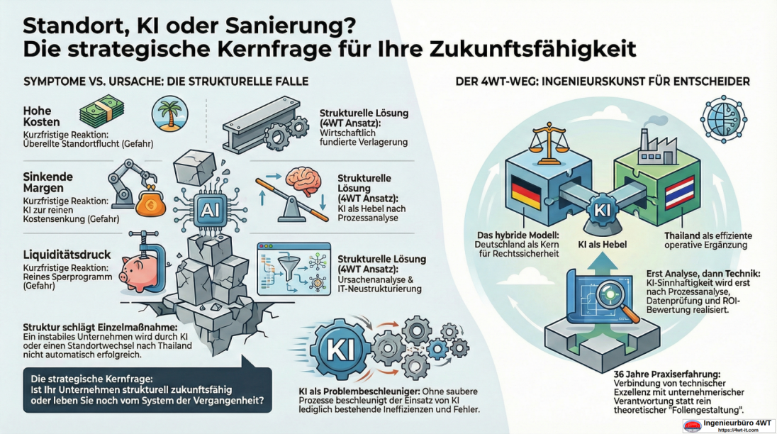 Die meisten Geschäftsführer beginnen mit Symptomen:- Kosten sind zu hoch → Standortverlagerung prüfen
