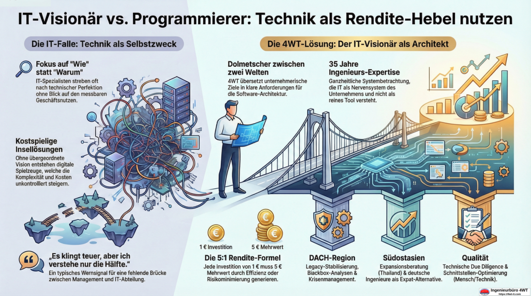 Zwischen High-Tech-Wahn und Rendite-Angst: Warum Ihr Unternehmen einen IT-Visionär braucht – und keinen weiteren Programmierer.