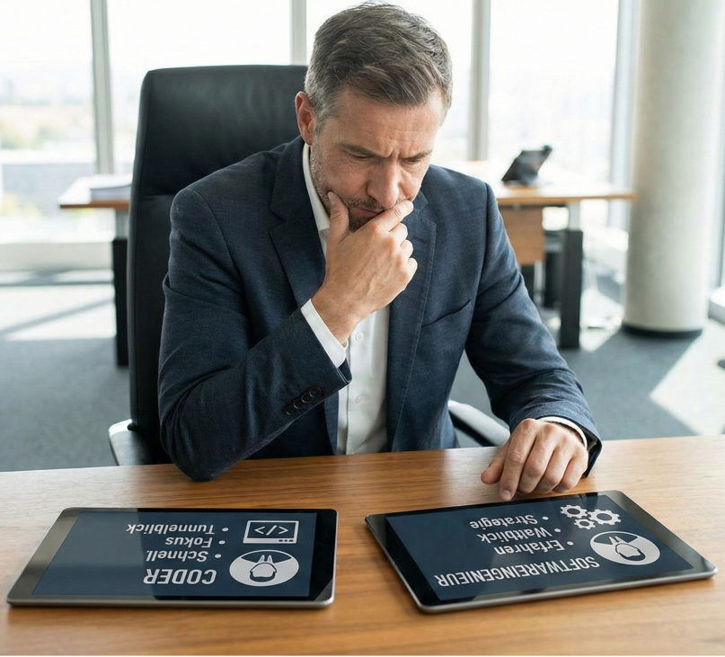 Weil unser größter Hebel nicht im Schreiben von Code liegt, sondern im Verstehen und Lenken des gesamten Systems. Wir sind der Visionär an Ihrer Seite, der die Spreu vom Weizen trennt.